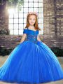 Ball Gowns Sleeveless Royal Blue Pageant Gowns For Girls Brush Train Lace Up