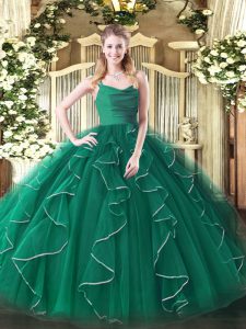 Ball Gowns Sweet 16 Dress Dark Green Straps Organza Sleeveless Floor Length Zipper