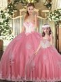 Ball Gowns Sweet 16 Dresses Watermelon Red Sweetheart Sleeveless Floor Length Lace Up
