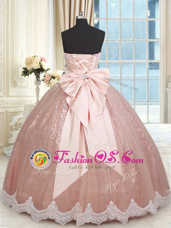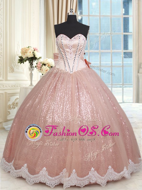 Ball Gowns Sweet 16 Quinceanera Dress Peach Sweetheart Tulle Sleeveless Floor Length Lace Up