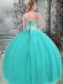 Ball Gowns Sweet 16 Quinceanera Dress Turquoise Sweetheart Tulle Sleeveless Floor Length Lace Up