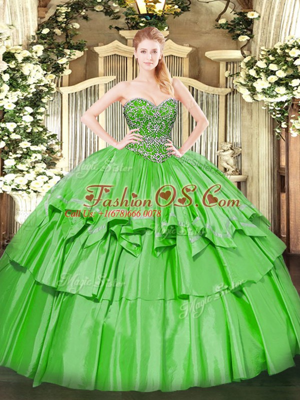 Ball Gowns Sweetheart Sleeveless Organza and Taffeta Floor Length Lace Up Beading and Ruffled Layers Sweet 16 Dresses