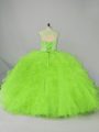 Ball Gowns Tulle Scoop Sleeveless Beading and Ruffles Lace Up Quince Ball Gowns