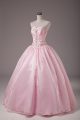 Ball Gowns Vestidos de Quinceanera Baby Pink Strapless Organza Sleeveless Floor Length Lace Up