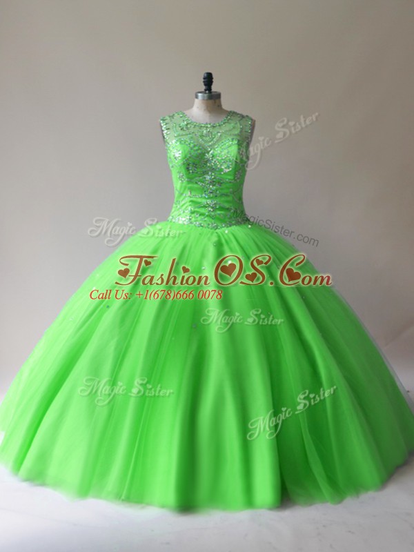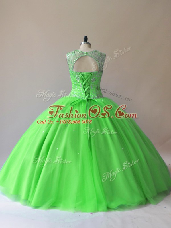 Ball Gowns Vestidos de Quinceanera Scoop Tulle Sleeveless Floor Length Lace Up