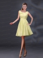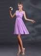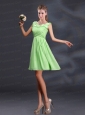 Bateau A Line Prom Dresses with Appliques and Ruching