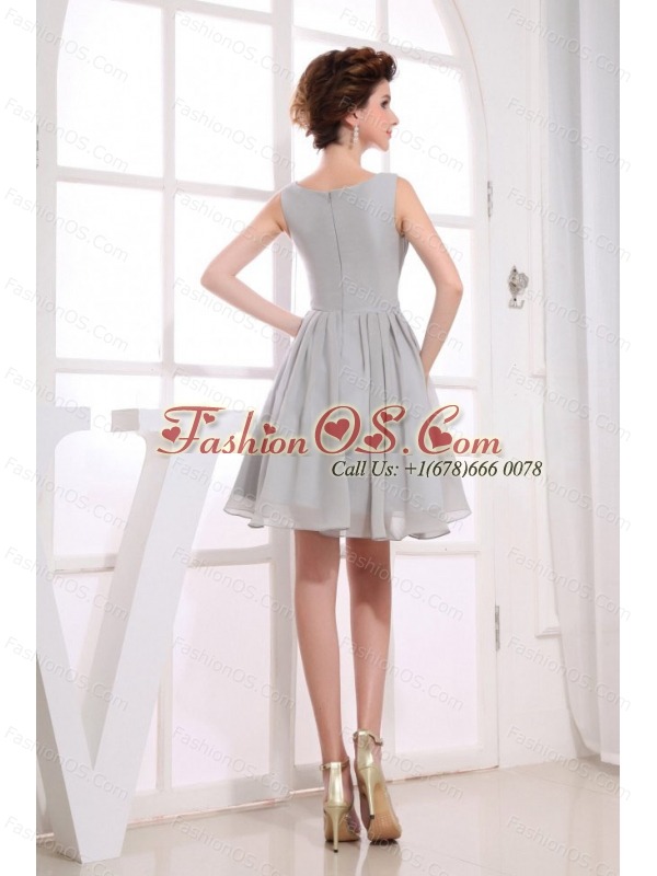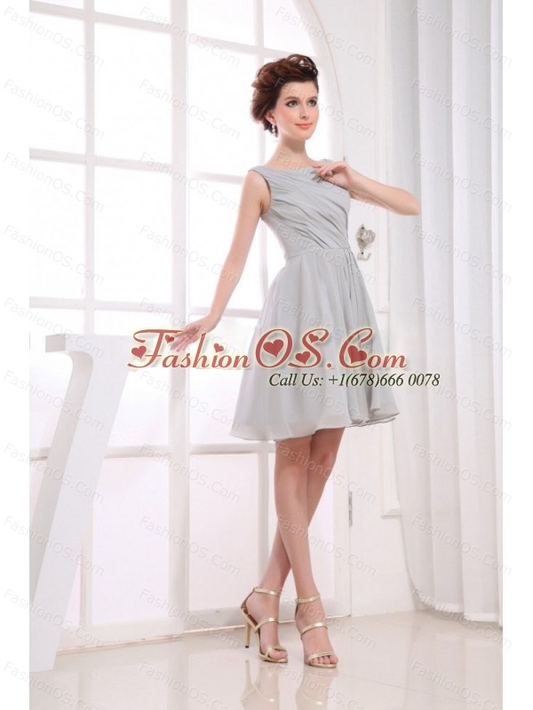 Bateau Grey knee-length Chiffon 2013 Prom Dress