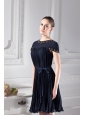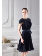 Bateau Knee-length A-line Cap Sleeves Prom Dress