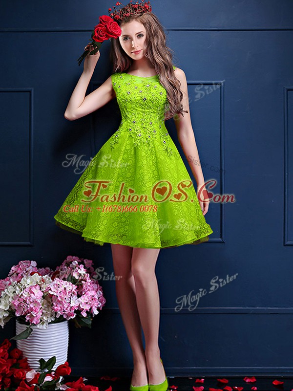 Home >  Special Occasion Dresses >  Discount Dama Dresses > Bateau Sleeveless Damas Dress Knee Length Beading and Lace Green Tulle