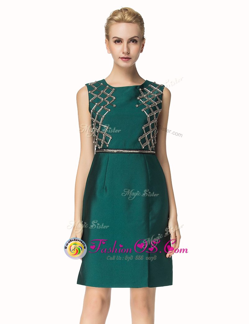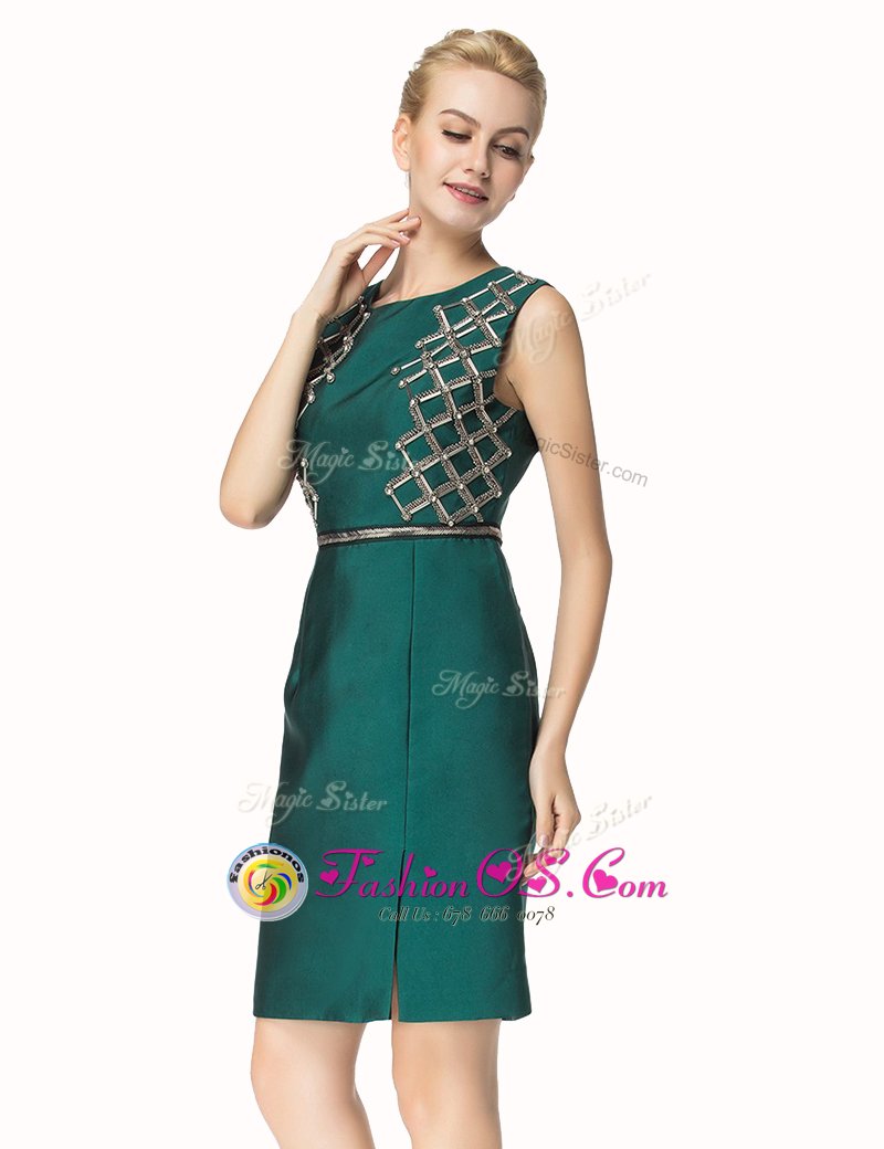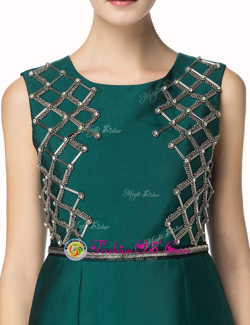 Bateau Sleeveless Satin Prom Evening Gown Beading Zipper