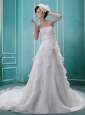 Beaded A-line Strapless Custom Made Wedding Dress With Organza Ruffles