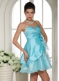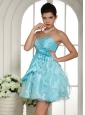 Home >  Shop By Color >  Prom Dresses by Color >  Aqua Blue Prom Dresses > Beaded and Hand Made Flowers For Aqua Blue Cocktail Dress Mini-length In Laurel