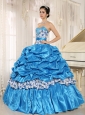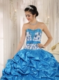 Beaded and Pick-ups For Aqua Blue Quinceanera Dress Taffeta and Printing In Hanalei City Hawaii