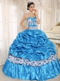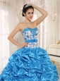 Home >  Quinceanera Dresses >  Unique Quinceanera Dresses > Beaded and Pick-ups For Aqua Blue Quinceanera Dress Taffeta and Printing In Hanalei City Hawaii
