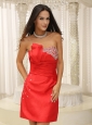 Home >  Special Occasion Dresses >  Homecoming Dresses > Beaded and Ruched Bodice Strapless Red Homecoming Dress For Cocktail Party