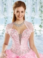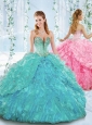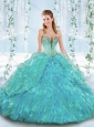 Beaded and Ruffled Organza Detachable 15 Quinceanera Dresses with Deep V Neckline