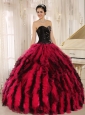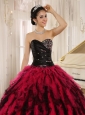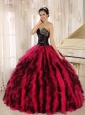 Beaded and Ruffled Sweetheart For Black and Hot Pink Quinceanera Dress In Kihei City Hawaii
