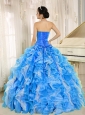 Beaded and Ruffles Custom Made For Unique Quinceanera Dresses In Blue