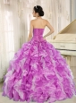 Beaded and Ruffles Lilac and White Cute Quinceanera Dresses for Custom Made