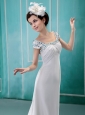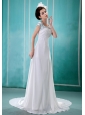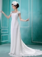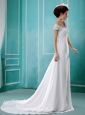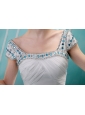 Beaded And Sequins Decorate Shoulder Square Chiffon Short Sleeves Celebrity Wedding Dress For Custom Made