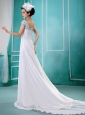 Vintage-inspired dresses have a unique charm and elegance that modern designs cannot duplicate. This one is an example of what we mean. It features a smoothly ruched bodice and square neckline embellished with glittering and charming rhinestone.All eyes will definitely be on you for the gorgeous and wonderful jewel-encrusted cap sleeves with intricate bead work throughout.The flowy skirt with a flounced train is sheer and made from a lightweight fabric. It's comprised of several fluid layers that move beautifully when you walk. A noble gown, sure to be a favorite.