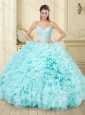 Beaded Beaded and Ruffled Aque Blue Quinceanera Gown in Tulle