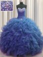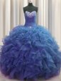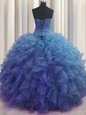 Home >  Quinceanera Dresses >  Clearance Quinceanera Dresses > Beaded Bust Organza Sleeveless Floor Length Ball Gown Prom Dress and Beading and Ruffles
