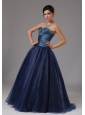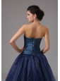 Home >  Shop By Color >  Prom Dresses by Color >  Navy Blue Prom Dresses > Beaded Decorate A-line Blue Strapless Organza Prom Dress In Saint Joseph