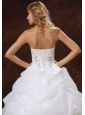 What a gorgeous wedding gown! This dress features a sweetheart neckline bodice encrusted by shimmering and sparkling beading throughout.The top skirt with pick ups and scattered wonderful beading accents the whole skirt give you an ultra-sophisticated look. A delicate lace up back completes the romantic look.