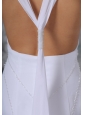 Elegant and timeless, you will be the picture of perfection in this smashing wedding gown! Sleeveless gown features an illusion tulle coated bodice. Empire charmeuse waistband creates a flattering silhouette. Hem trimmed flowy skirt with layered chiffon finishes off the look. Open back give the dress a sexy feeling. Special Watteau Train give the dress a unique taste.