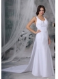 Home >  Wedding Dresses >  Elegant Wedding Dresses > Beaded Decorate Bodice Watteau Train Chiffon Scoop Simple Style Wedding Dress For 2013