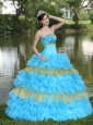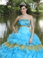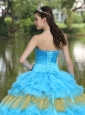 Beaded Decorate Bust Sequins Organza Aqua Blue and Yellow Strapless Floor-length Tiered Sweet Quinceanera Dress For 2013