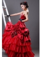 Home >  Quinceanera Dresses >  Fashionable Quinceanera Dresses > Beaded Decorate Bust Strapless Hand Made Flowers Floor-length Red Taffeta and Organza 2013 Quinceanera Dress