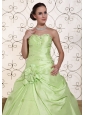 Beaded Decorate Bust Sweet Quinceanera Dress For 2013 Yellow Green Taffeta and Organza Gown