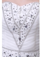 This pure white wedding dress features a strapless bodice with a sweetheart neckline and pleated fabric throughout. The beaded decorate bust forms a v-like shape which is coordinated with the beaded waistline. Tiers of tulle create layers for a voluminous skirt that will look flawless in pictures commemorating this special moment. You will Look fabulous on your big day in this Bridal wedding dress.