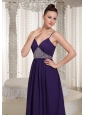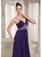 This strap V-neck evening gown continues to be one of the hottest fashion trends for 2013. A pleated fitting bodice is adorned with magnificent beadwork. Smooth chiffon fabric on the bottom of the dress flows from the waist part shaped a pefect A-line skirt. A hidden zipper up back finishes the look and make the whole dress so elegant.