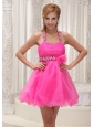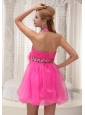 Beaded Decorate Halter Hand Made Flower Hot Pink Organza Mini-length Prom / Cocktail Dress For 2013