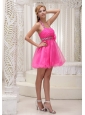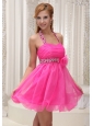 Home >  Prom Dresses >  Popular Prom Dresses > Beaded Decorate Halter Hand Made Flower Hot Pink Organza Mini-length Prom / Cocktail Dress For 2013