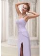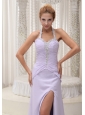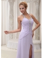 Home >  Prom Dresses >  New Arrivals > Beaded Decorate Halter Ruched Bodice Lilac High Slit Prom / Evening Dress Chiffon