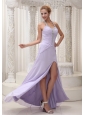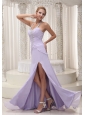 Beaded Decorate Halter Ruched Bodice Lilac High Slit Prom / Evening Dress Chiffon