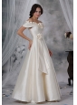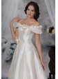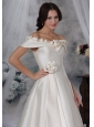 Beaded Decorate Off The Shoulder Hand Made Flower A-line Floor-length Wedding Dress For 2013