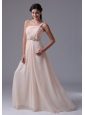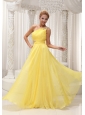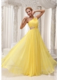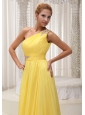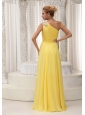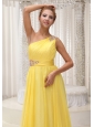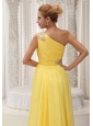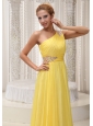 Beaded Decorate One Shoulder and Waist Ruched Bodice Yellow Chiffon Custom Made Floor-length Prom / Evening Dress For 2013