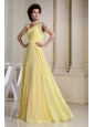 Beaded Decorate One Shoulder For Yellow Simple Prom Dress