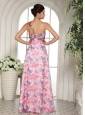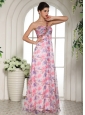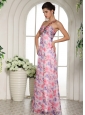 Beaded Decorate One Shoulder Printing Chiffon Celebrity Prom Dress For Custom Made