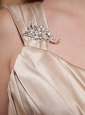 Beaded Decorate One Shoulder Ruch and Sash For Prom Dress With Champagne