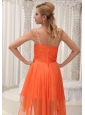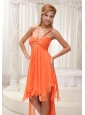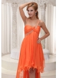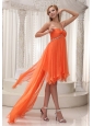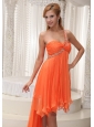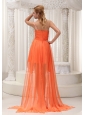 Beaded Decorate One Shoulder Ruched Bodice Orange Chiffon High-low A-line Prom / Homecoming Dress For 2013