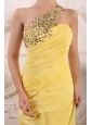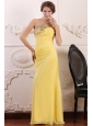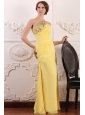 Beaded Decorate One Shoulder Yellow Chiffon Column Prom Dress