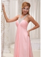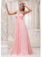 Home >  Prom Dresses >  Modest Prom Dresses > Beaded Decorate Scoop Neckline Ruched Decorate Bust Brush Train Baby Pink Chiffon 2013 Prom Dress For Military Ball