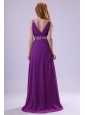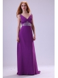 Beaded Decorate Shoulder and Waist V-neck Empire Purple Prom Dress