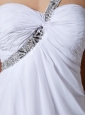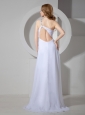 Home >  Prom Dresses >  Elegant Prom Dresses > Beaded Decorate Shoulder Brush Train White Chiffon Prom Dress